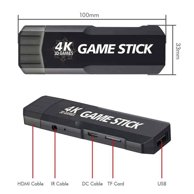GD10 عصا ألعاب ثلاثية الأبعاد بجودة 4K 32 جيجا و64 جيجا 128 جيجا لوحة ألعاب فيديو لاسلكية غمبد HD 60fps ضد الاهتزاز 40000 لعبة Emuelec4.3 نظام FC