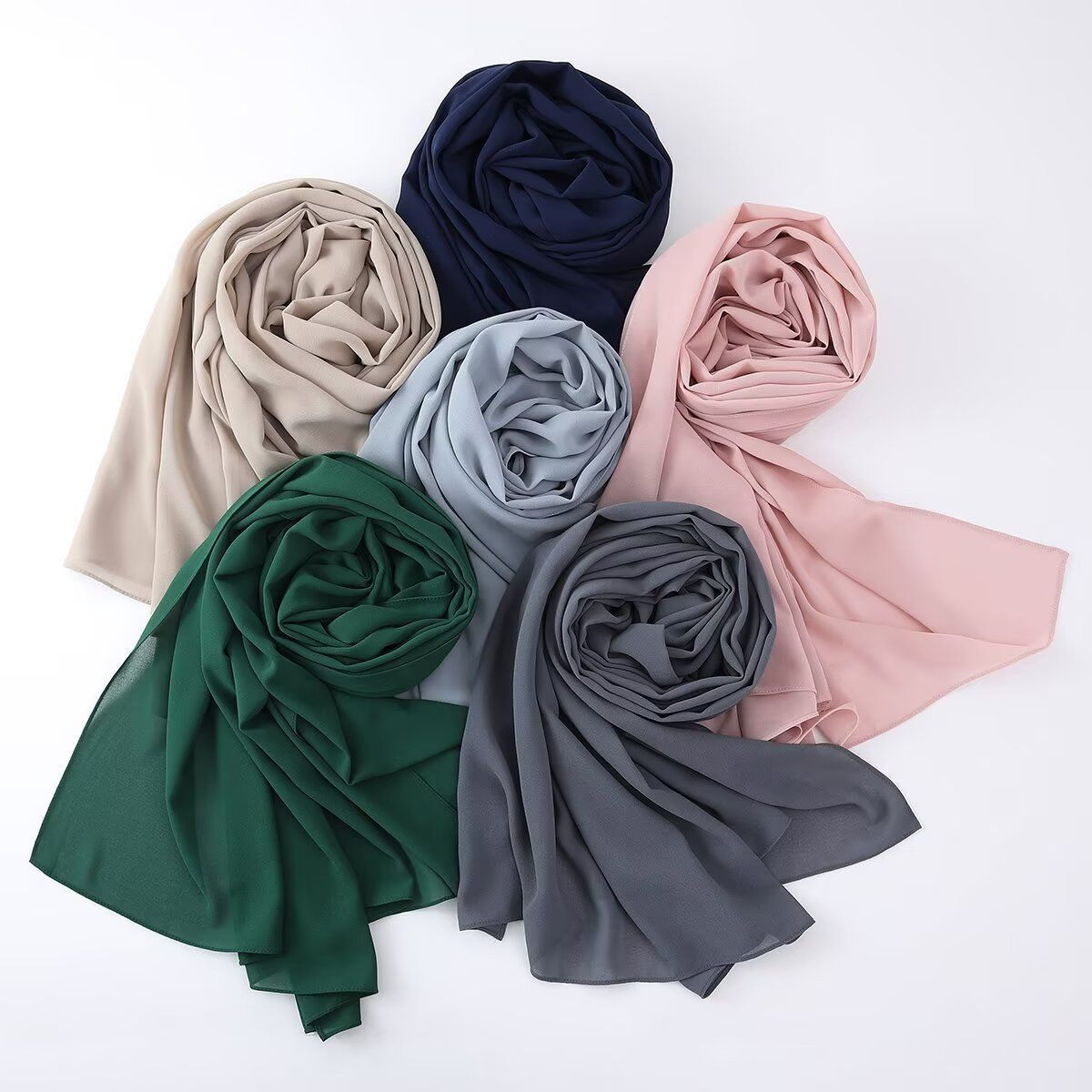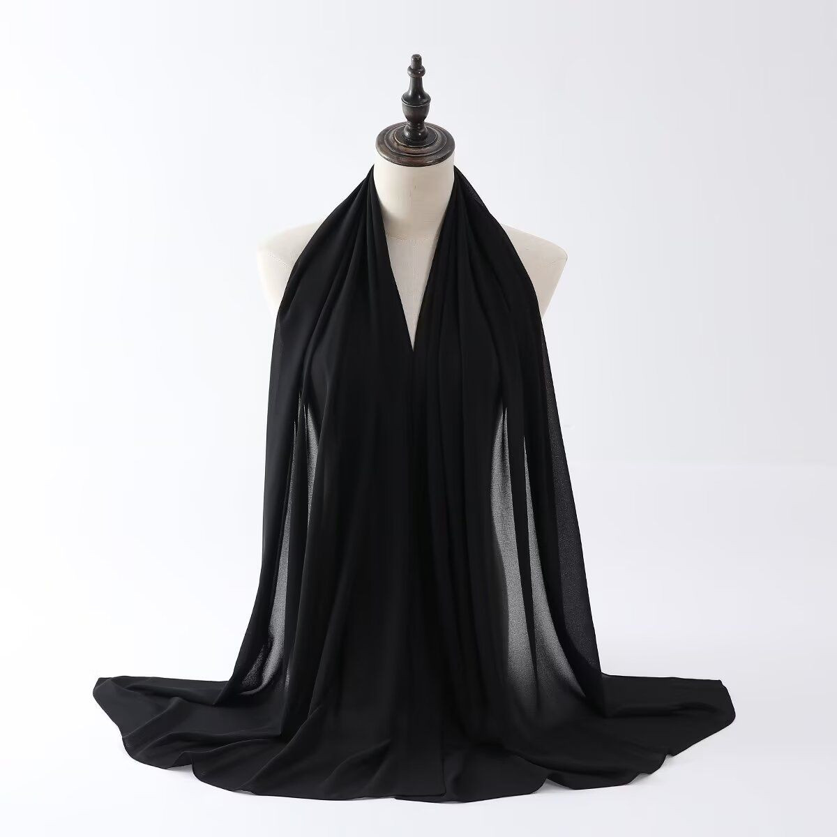 This Muslim Hijab is made of soft chiffon fabric, offering a stylish and comfortable choice for women. Measuring 70*175cm, it provides ample coverage and is perfect for summer wear. Its solid pattern design ensures versatility and elegance, suitable for various occasions.