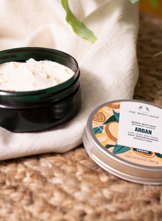 نظرة عامةLove and nourish very dry skin like never before with our best ever Argan Body Butter. Now made with 95% ingredients of natural origin, including argan oil, handcrafted Community Fair Trade shea butter from Ghana and Community Fair Trade organic babassu oil from Brazil, our body moisturiser leaves seriously dry skin feeling softer, smoother and intensely nourished with 96hr moisture. It even gives you a natural-looking glow. We’ve also improved the scent, so you can smell nuts. This nutty, intensely creamy Body Butter comes in recyclable packaging* made with an aluminium lid and 100% recycled plastic tub, including Community Fair Trade recycled plastic from India. This means you can love your planet every time you love that beautiful body.
