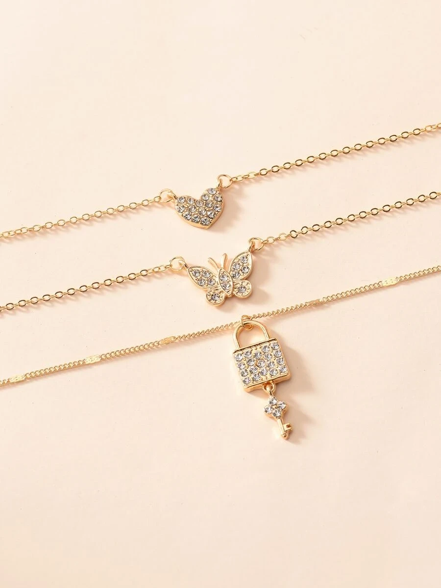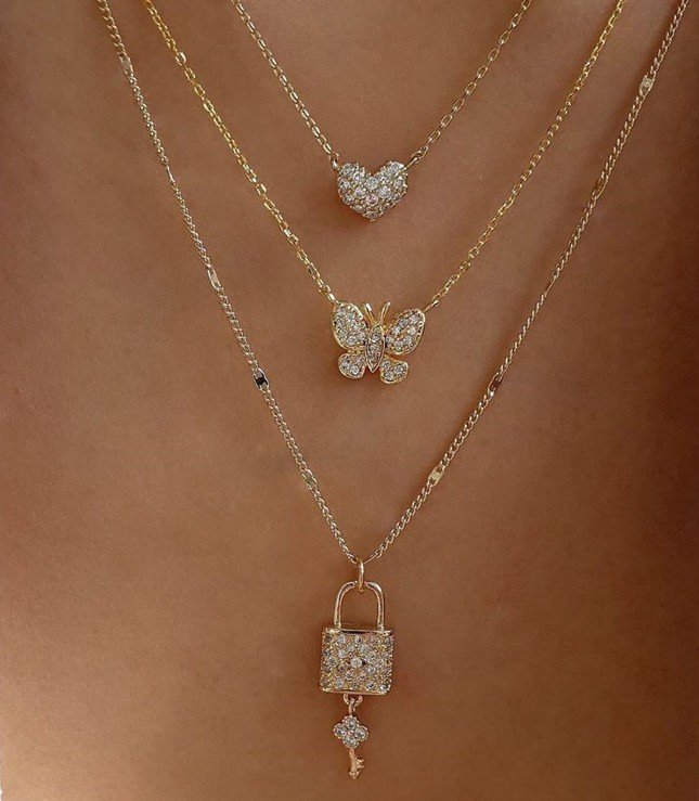 حجر الراين القلب قلادة الطبقات (GOLD)