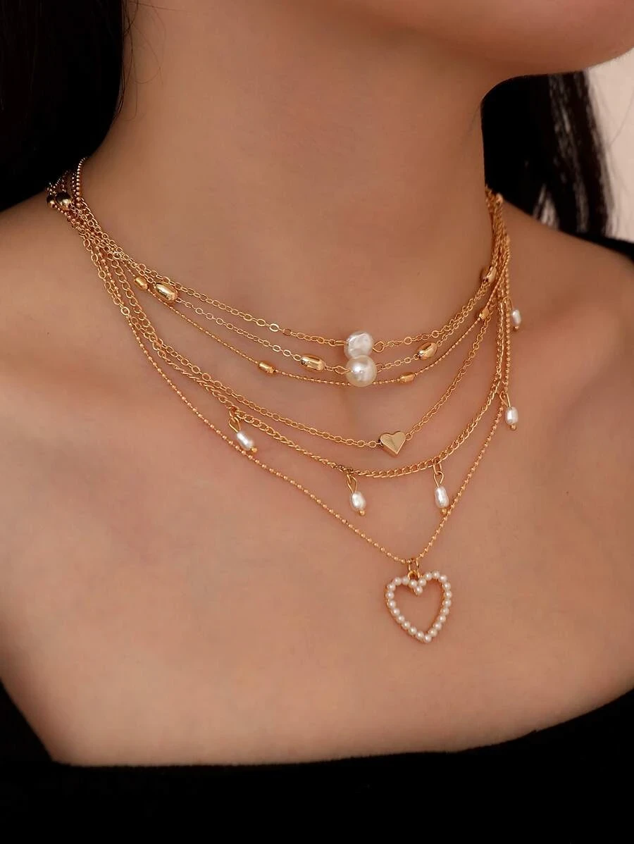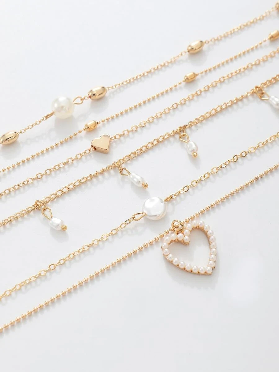 قلادة بتعليقة القلب 5 قطع