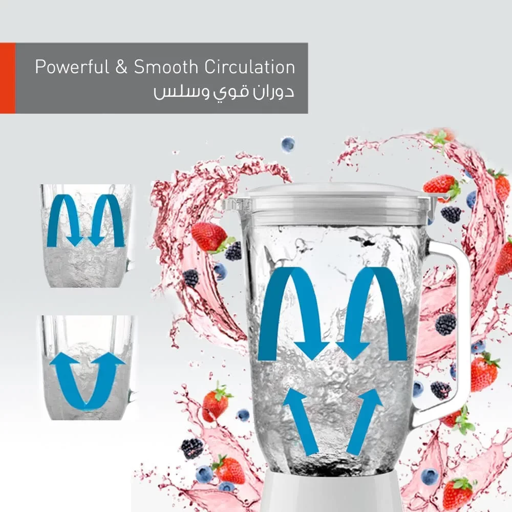 المكونات المضمنة. : جك خلاط زجاجي 2 ليتر + 2 سحان + الخلاط + دليل الإستخدام