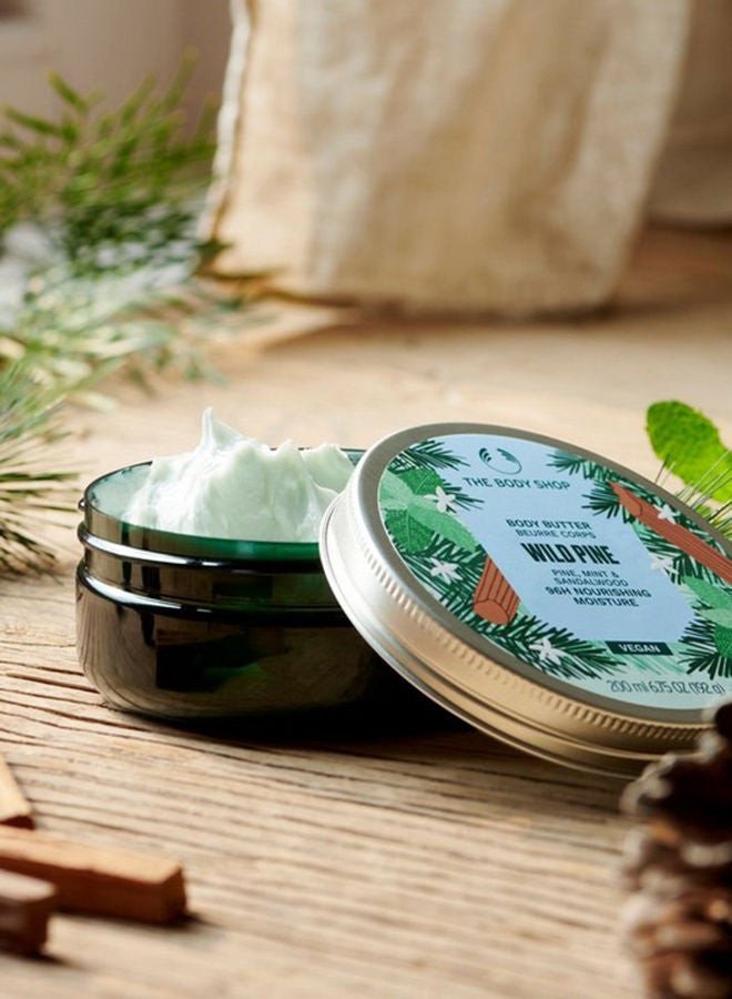 نظرة عامةInvigorate your senses with this refreshing scent and give your skin a moisturizing, healthy-looking glow with our Wild Pine Body Butter. There’s no better companion for your dry, winter skin than this rich butter which melts into your skin, giving you up to 96hr of moisture. Breathe in the fresh forest smells of pine essential oil, renowned for its uplifting and clarifying scent, with hints of mint and sandalwood. Our butter is enriched with Community Fair Trade shea butter sourced from Ghana, where our trade has helped provide independence to over 600 women since 1994. Made with 97% ingredients of natural origin, this vegan non-sticky, non-greasy texture will keep your skin softer and smoother. Once you’ve used up your nourishing body butter and re-use the pot for storing bits and bobs, or pop it in the recycling*.