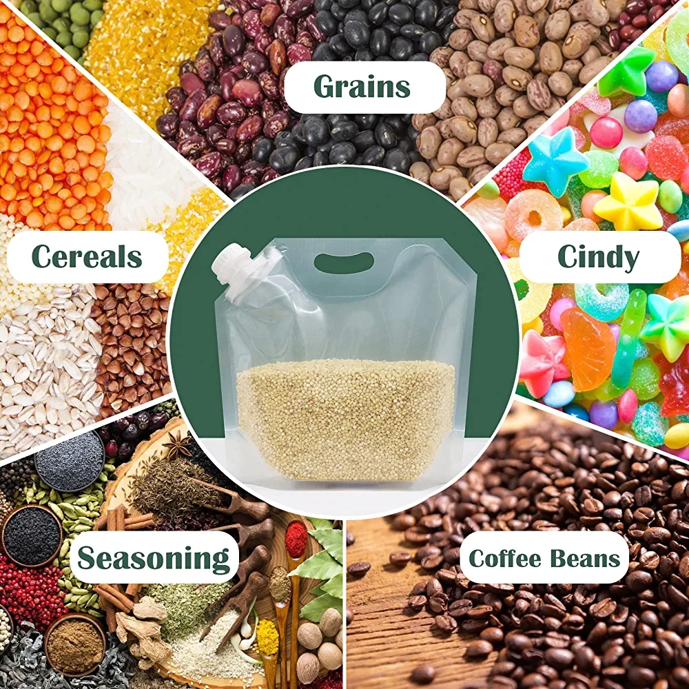 • 【فتحة غطاء محكمة الغلق ومريحة】أكياس قابلة لإعادة الإغلاق سهلة الاستخدام للغاية، يمكن للقمع المتضمن تخزين المكسرات والحبوب والفاصوليا والوجبات الخفيفة والأرز والحبوب والشوفان الملفوف والتوابل وما إلى ذلك بسهولة أو أي طعام سائل بطريقة موفرة للمساحة ومستدامة.